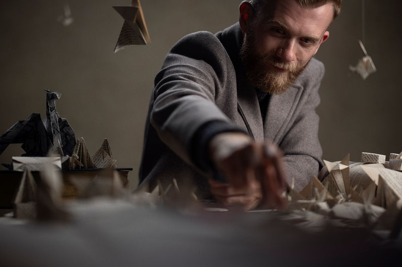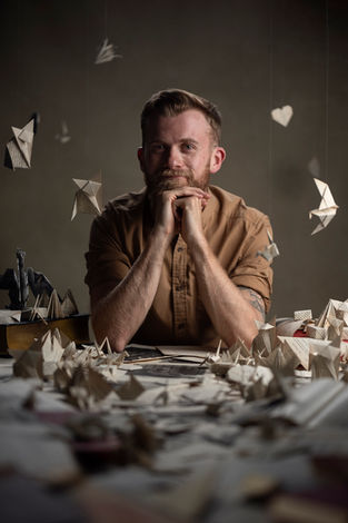 A portrait session for author James Moss, created for use inside his book and across his own personal promotion. Origami props, books and careful lighting were used to create images that felt distinctive, thoughtful and visually connected to the themes of the project.